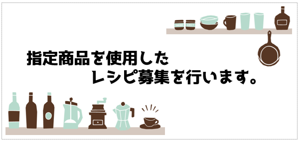 ・応募する1レシピごとに、下記特定商品を1商品以上が使用されていること(使用にカウントする商品は、レシピ開発の重要な部分を占める食材等に限定)
