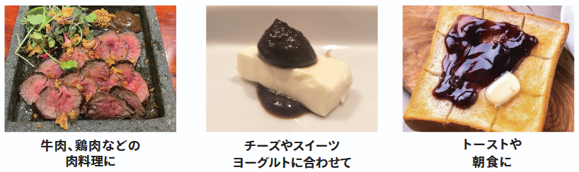 自社農園で栽培をしたにんにくを中心に、2週間かけて発酵させた黒にんにくをペースト状にしたもの。大和町。特有の臭いや刺激はほとんどなく、生のまま食べることができる。